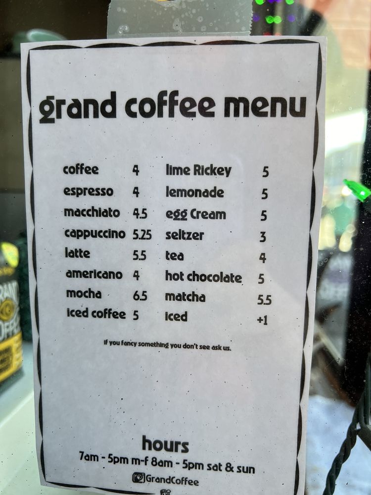 Located at 2663 Mission St in San Francisco, Grand Coffee has quickly become a beloved spot for locals and visitors alike. The cozy ambiance invites you to relax while enjoying their thoughtfully curated coffee selections. From classic options like Espresso ($4.40) and Cappuccino ($5.25) to unique creations such as the Orange Blossom Almond Latte, every cup here tells a story.